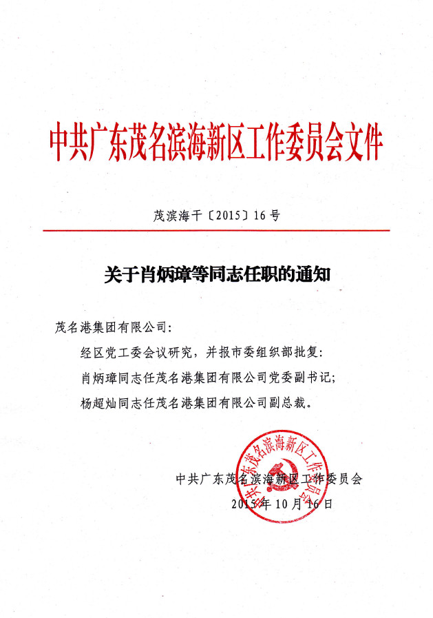 新區(qū)黨工委決定:肖炳璋集團黨委副書記,楊超燦任集團副總裁.pdf
