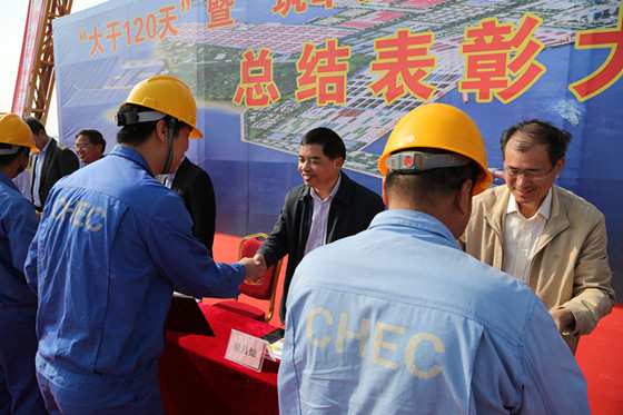 陳堯在講話中對全體參建人員迎接挑戰(zhàn),全力以赴抗臺復產(chǎn),爭分奪秒推進項目建設的精神給予高度贊揚。他指出,防波堤項目是博賀新港區(qū)建設的基礎,是新區(qū)建設發(fā)展的基礎,是基礎中的基礎,只有防波堤建好了,才能托起茂名港口夢。他希望全體參建人員,在超額完成2015年建設任務的基礎上,開展新的征程,加快建設速度,力爭提前完成2016年建設任務,為新區(qū)發(fā)展奠定堅實的基礎。