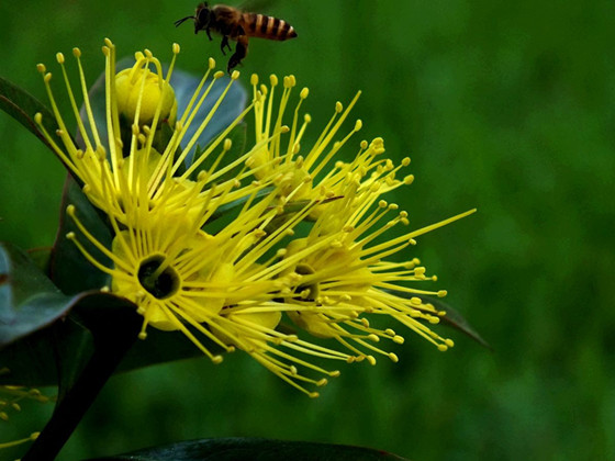 雖然Golden Penda非Panda,中國人還是把這植物稱為“黃金熊貓”。 金蒲桃葉色亮綠,株形挺拔,在夏秋間開花,花期長,花簇生枝頂,金黃色,花序呈球狀,是十分優(yōu)良的園林綠化樹種。