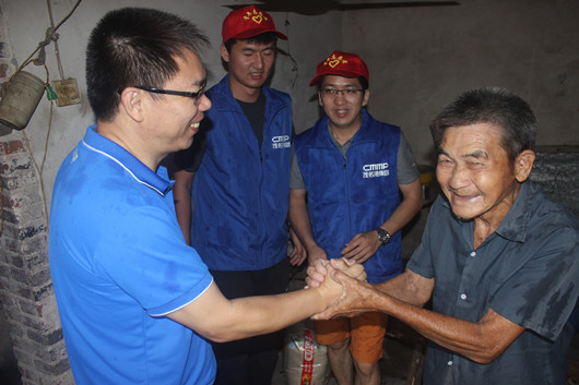 集團黨委委員、紀委副書記、工會副主席黃遠維與五保戶老人親切握手交流