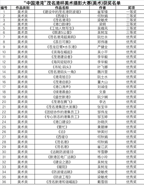 “中國港灣”茂名港杯首屆美術(shù)攝影大賽作品獲獎名單公示