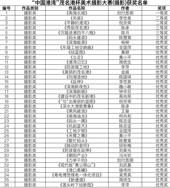 《第一屆“中國港灣”茂名港杯美術(shù)攝影大賽(攝影類)獲獎名單》