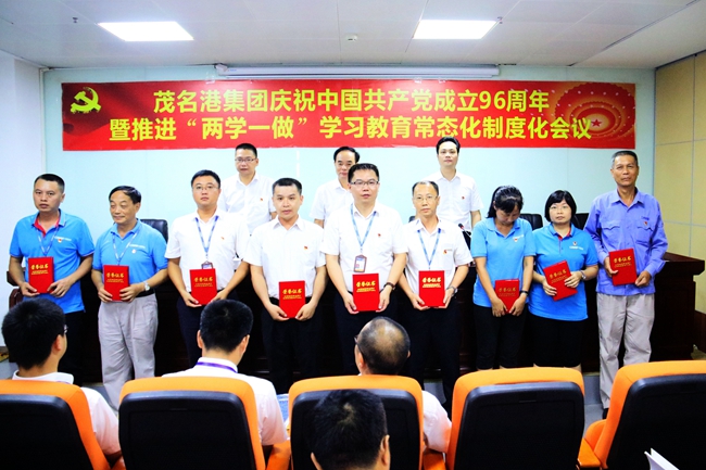 6月28日,茂名港集團(tuán)召開慶祝中國共產(chǎn)黨成立96周年暨推進(jìn)“兩學(xué)一做”學(xué)習(xí)教育常態(tài)化制度化會(huì)議。集團(tuán)黨委書記、董事長劉乃英圍繞推進(jìn)“兩學(xué)一做”學(xué)習(xí)常態(tài)化制度化工作為廣大黨員上了一堂生動(dòng)而深刻的黨課,黨委副書記、紀(jì)委書記肖炳璋主持會(huì)議,副總裁楊超燦宣讀了《關(guān)于表彰2016年度優(yōu)秀黨員的決定》,黨委委員黃遠(yuǎn)維對(duì)《關(guān)于2017年推進(jìn)“兩學(xué)一做”學(xué)習(xí)常態(tài)化制度化的實(shí)施方案》作了說明。