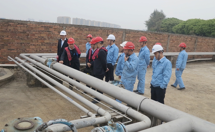 集團(tuán)領(lǐng)導(dǎo)楊超燦及安全環(huán)保部相關(guān)同志參加檢查活動(dòng)。(陳智)