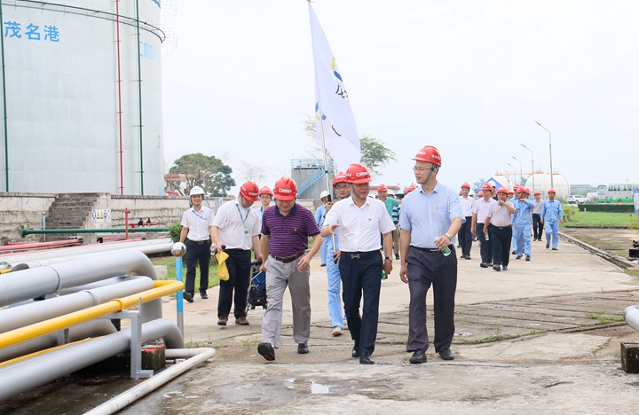 ▲與會(huì)人員合照 與會(huì)人員先后到了水東灣港區(qū)、博賀新港區(qū)現(xiàn)場(chǎng)實(shí)地考察了茂名港集團(tuán)下屬公司生產(chǎn)經(jīng)營(yíng)情況及負(fù)責(zé)建設(shè)的省、市重點(diǎn)項(xiàng)目情況,對(duì)茂名港集團(tuán)推行企業(yè)文化建設(shè),助力企業(yè)經(jīng)營(yíng)管理的成功做法、成效紛紛表示贊嘆和認(rèn)可。
