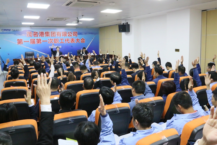 ▲集團(tuán)職工代表們舉手通過7項(xiàng)議案 本次大會(huì),集團(tuán)職工代表認(rèn)真履行職責(zé),行使權(quán)力,聽取并審議通過了《茂名港集團(tuán)有限公司2018年工作報(bào)告》、《茂名港集團(tuán)有限公司2018年財(cái)務(wù)決算及2019年預(yù)算情況報(bào)告》、《茂名港集團(tuán)有限公司職工福利、管理費(fèi)用2018年開支執(zhí)行情況及2019年開支計(jì)劃報(bào)告》、《茂名港集團(tuán)有限公司職工代表大會(huì)工作規(guī)范(草案)》、《茂名港集團(tuán)有限公司第一屆第一次職工代表大會(huì)專門工作委員會(huì)建議名單》、《茂名港集團(tuán)有限公司工會(huì)慰問制度(草案)》、《茂名港集團(tuán)有限公司集體合同(草案)》等7項(xiàng)議案。