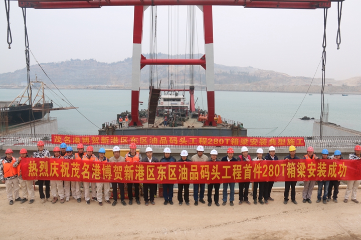 1月7日,茂名港博賀新港區(qū)東區(qū)油品碼頭工程首件箱梁順利完成安裝,標(biāo)志著該項(xiàng)目進(jìn)入全面架梁施工階段。