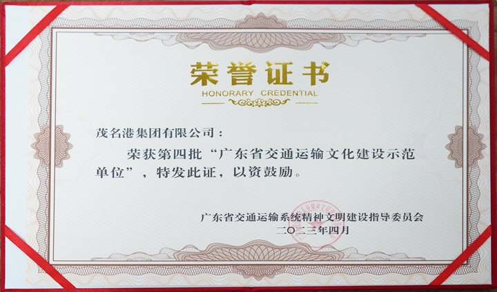 日前,廣東省交通運(yùn)輸系統(tǒng)精神文明建設(shè)指導(dǎo)委員會(huì)公布了第四批廣東省交通運(yùn)輸文化品牌和文化建設(shè)示范單位名單,茂名港集團(tuán)被評(píng)為“廣東省交通運(yùn)輸文化建設(shè)示范單位”。