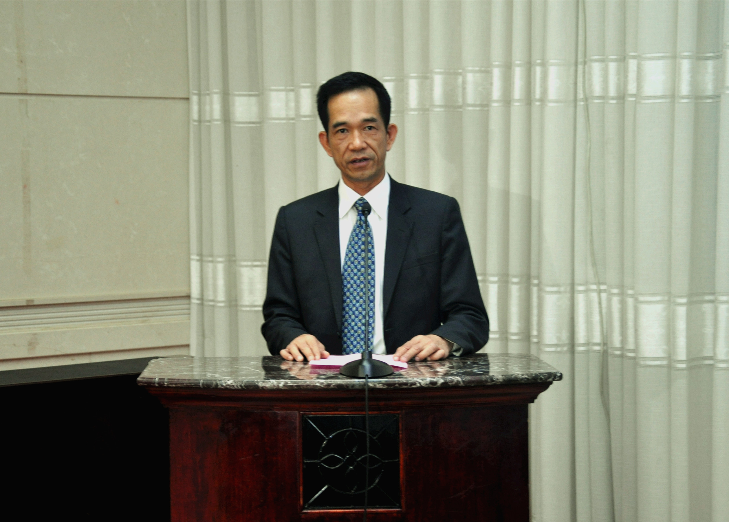 中國港灣公司總經(jīng)理莫文賀在簽約儀式上講話