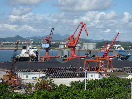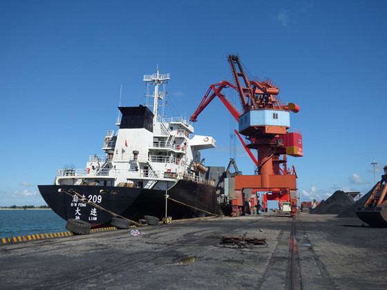 “勤豐209”輪滿載礦砂靠泊港口經營公司萬噸碼頭卸貨